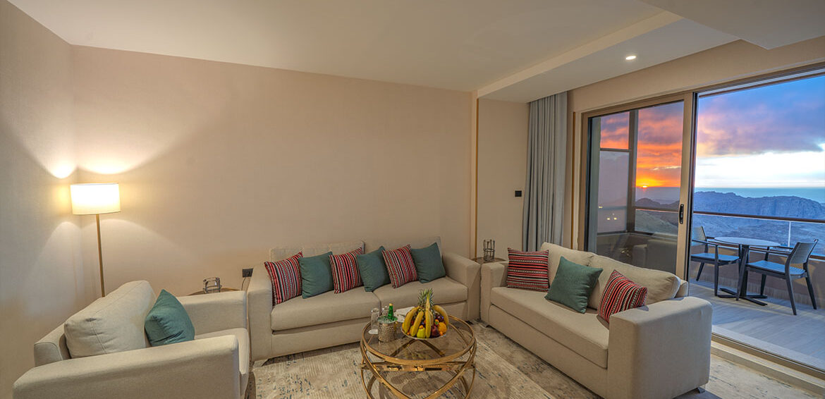 Wide windows open to breathtaking vistas of Petra’s majestic mountains, bathing the room in natural light and connecting guests with the timeless terrain that surrounds the hotel. Whether enjoying a slow morning with a hot drink or unwinding after a day exploring the ancient city, the view becomes an unforgettable part of the experience.